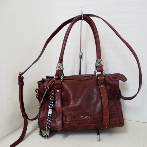 諫早市のお客様よりバーバリー 2WAYレザーハンドバッグを買取致しました。