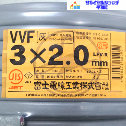 大村市のお客様より富士電線 VVFケーブル 3×2.0を買取致しました。